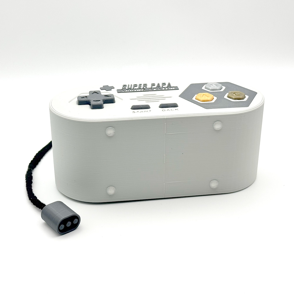 Ein besonderes Highlight ist die schwarze Makramee-Schnur mit Stecker, die an einen echten Controller erinnert und der Spardose einen authentischen Look verleiht.