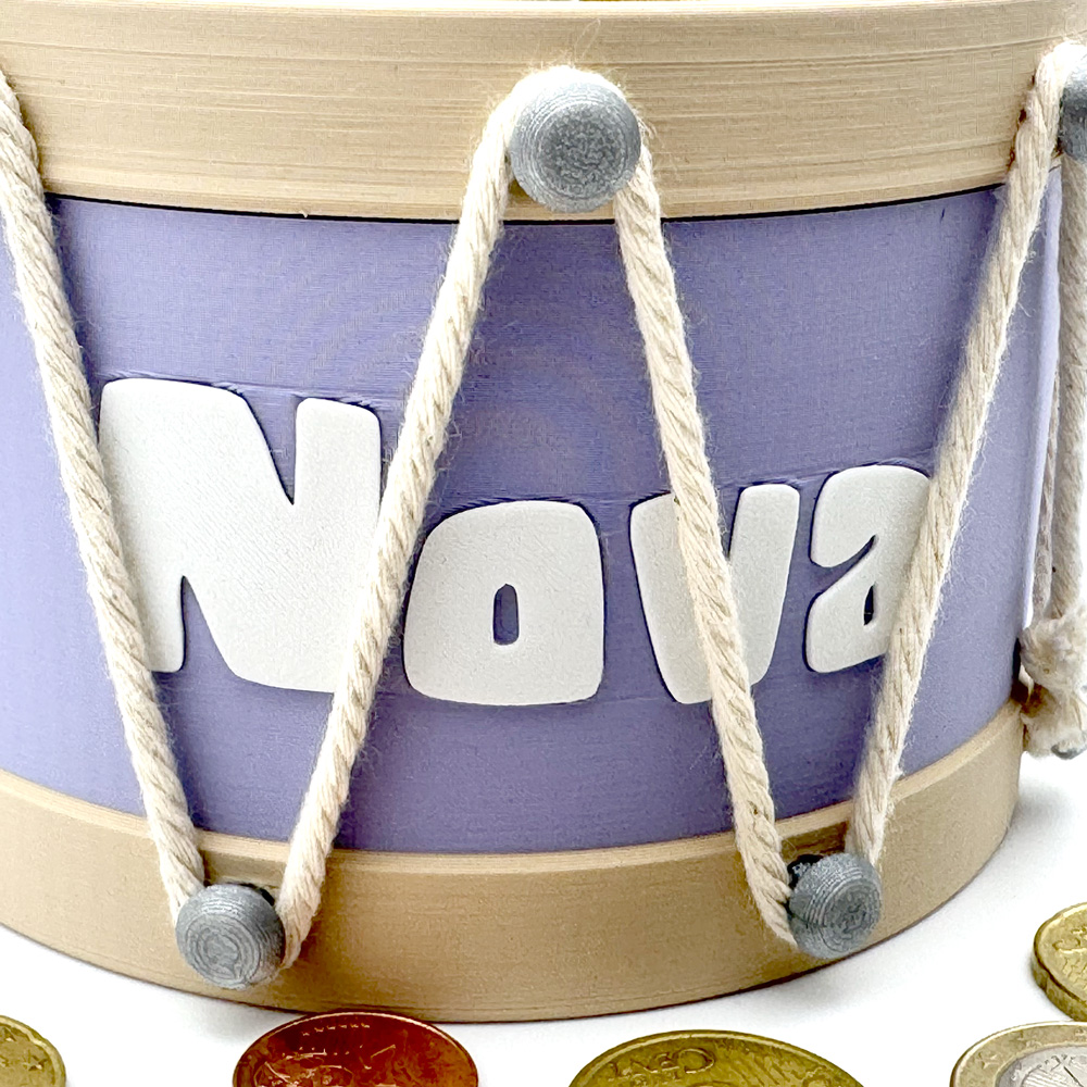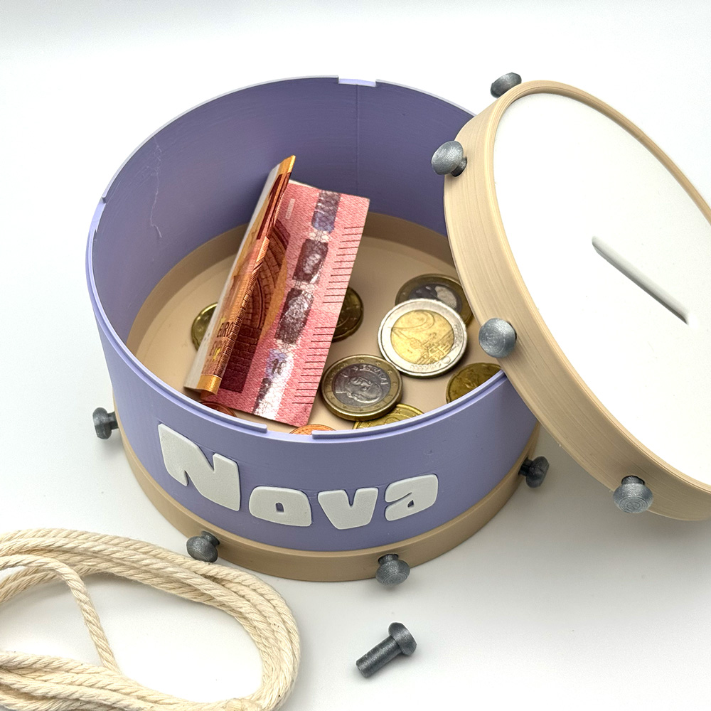 Die liebevoll gestaltete Trommel-Spardose ist nicht nur ein praktischer Ort für das Taschengeld, sondern auch ein echtes Deko-Highlight.